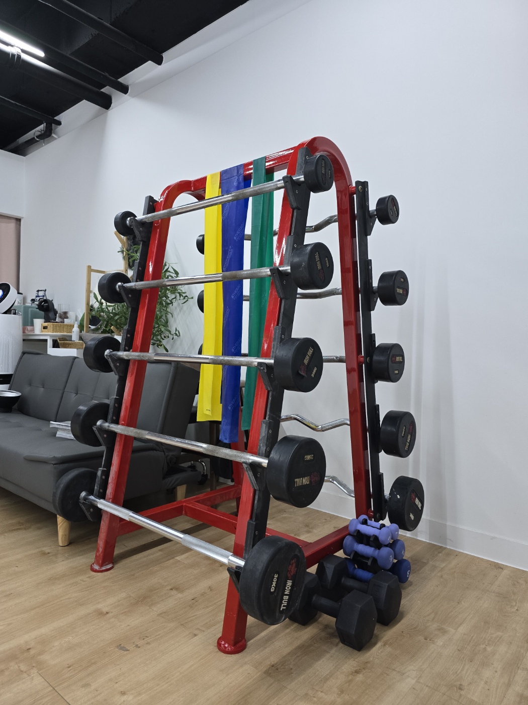 A. 스튜디오에 1, 2, 3, 5KG 덤벨과, 바벨렉, 밴드가 구비되어 있습니다.